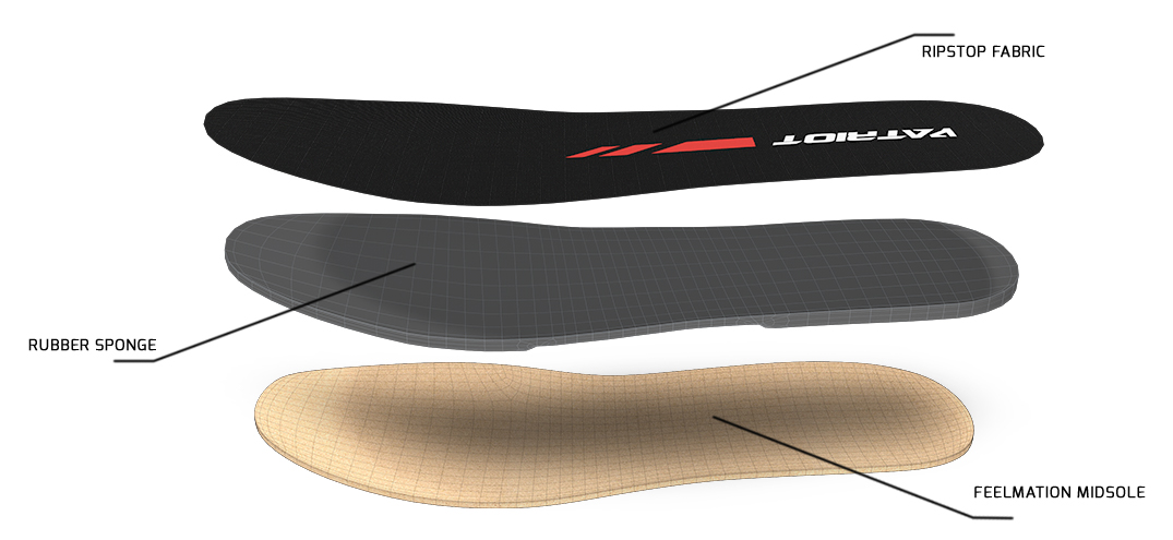 การรองรับที่ดีไม่ได้จบที่ความสบายเพียงอย่างเดียวเราจึงเลือก Rubber Sponge ที่มีระดับความนุ่มที่เหมาะสม ที่ดูดซับแรงและสะท้อนกลับเป็นแรงส่ง เพื่อพร้อมรับสำหรับการเดินหรือการเคลื่อนไหวในระยะทางไกล