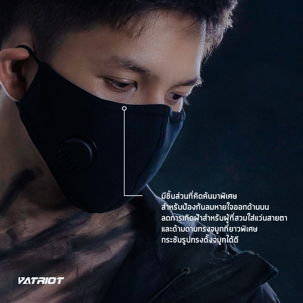 • มีชิ้นส่วนที่คิดค้นมาพิเศษ สำหรับป้องกันลมหายใจออกด้านบน ลดการเกิดฝ้าสำหรับผู้ที่สวมใส่แว่นสายตา หรือแว่นกันแดด และป้องกันไม่ให้ลมหายใจเข้าลูกตา เหมือนหน้ากากทั่วไป