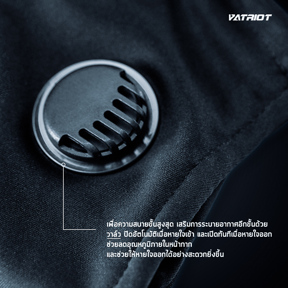 • เพื่อความสบายขั้นสุด เสริมการระบายอากาศอีกขั้นด้วย วาล์ว ปิดอัตโนมัติเมื่อหายใจเข้า และเปิดทันทีเมื่อหายใจออก ช่วยลดอุณหภูมิภายในหน้ากาก และทำให้หายใจออกได้อย่างสะดวก