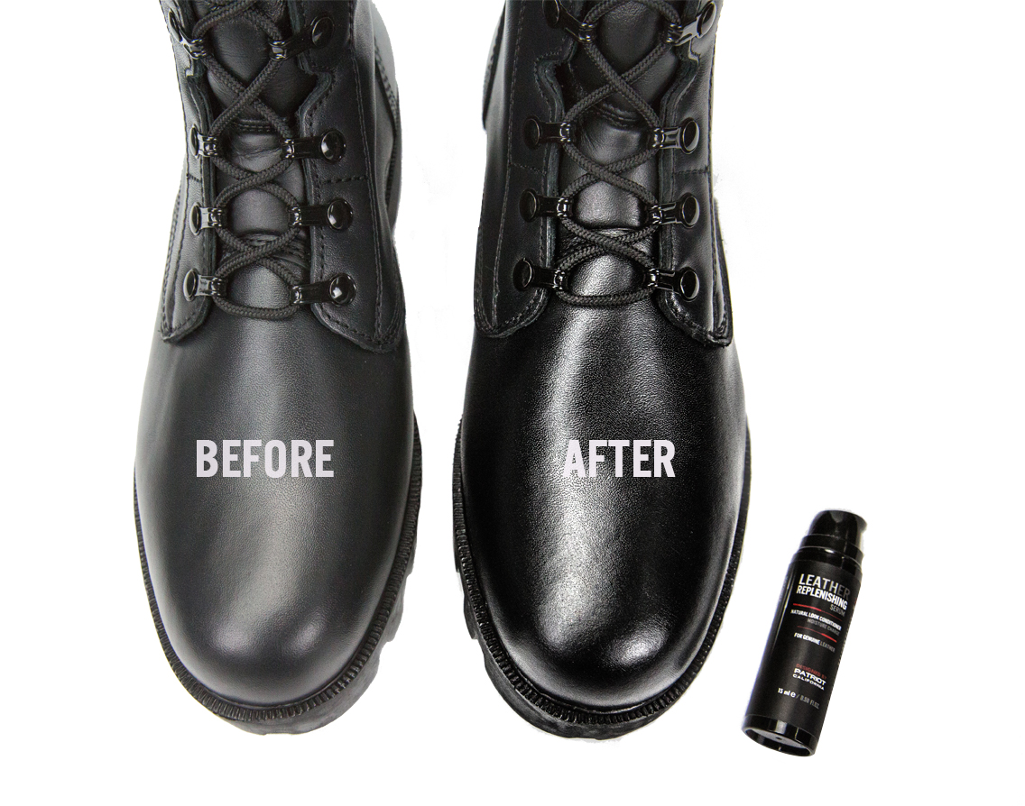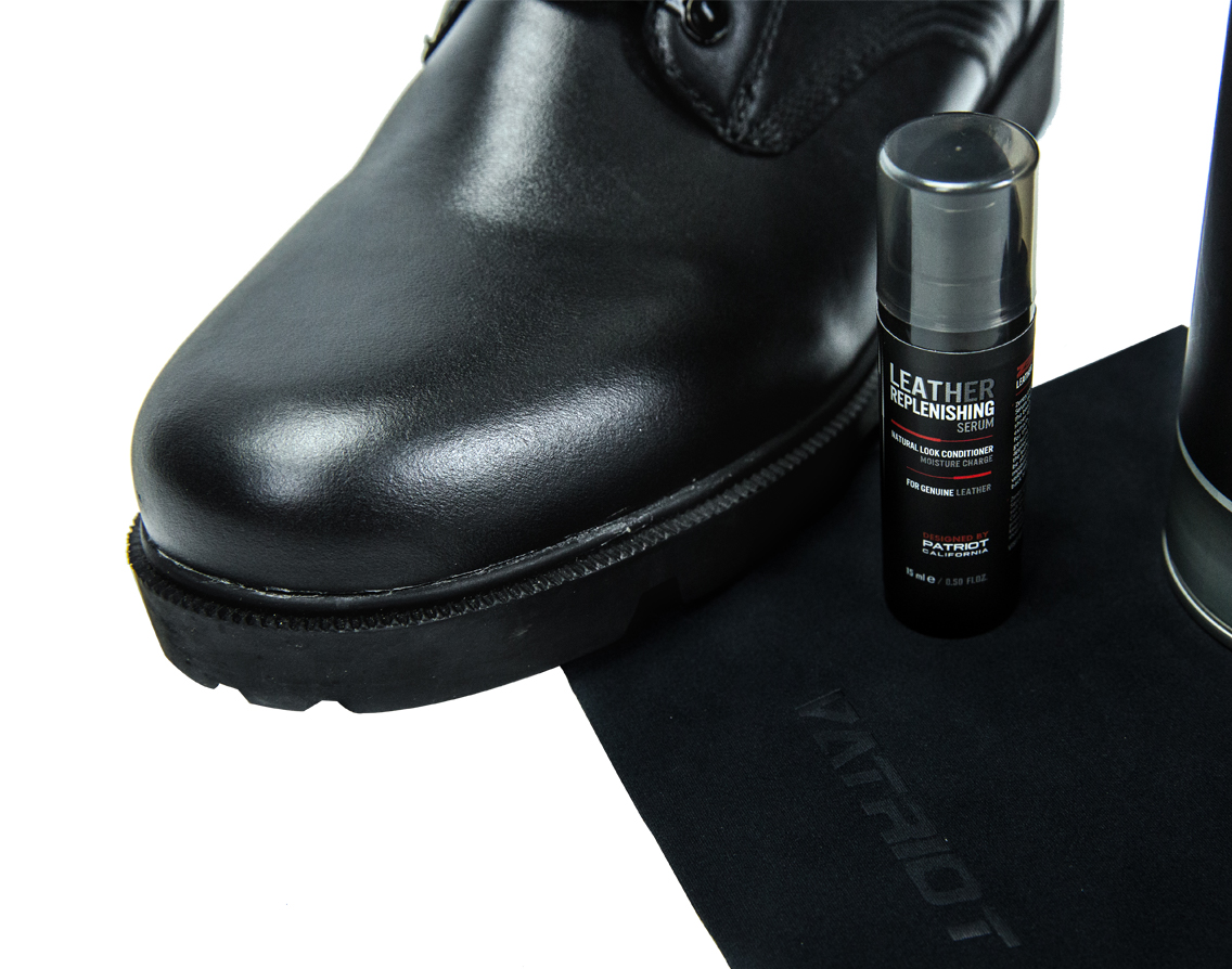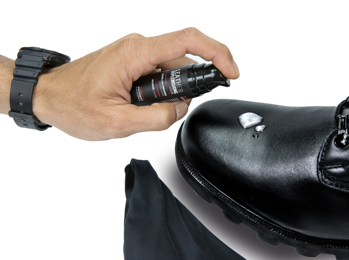 1.หยดเซรั่มลงบนหนัง 1 - 2 หยด จากนั้นใช้ผ้าสะอาดเช็ดให้ทั่วบริเวณส่วนที่เป็นหนังของรองเท้า วิธีสังเกตุคือ บริเวณที่ทาเซรั่มไปแล้วหนังจะมีสีเข้มขึ้น